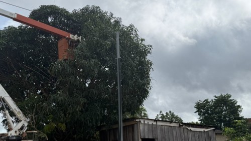 SERVIÇOS - Poda preventiva é realizada em torno de uma residência na zona Leste